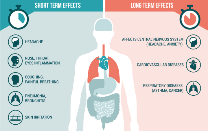 breathing problems, trigger asthma, reduce lung function and cause lung diseases